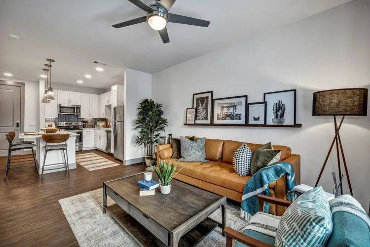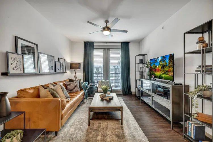 apartment features a spacious living room that is fully furnished with a laundry room, built-in wardrobe and a queen-size bed.